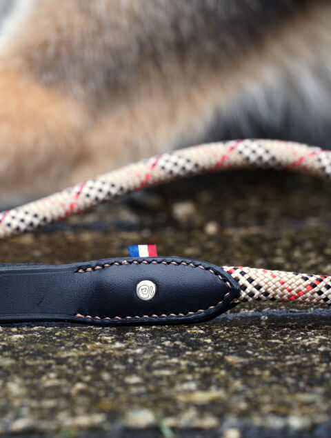 Corde ronde colorée : La touche colorée de cette laisse se distingue par sa corde ronde de 10 mm de diamètre, qui ajoute un contraste élégant avec le cuir, tout en offrant souplesse et légèreté.